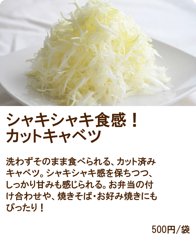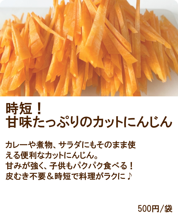 - すぐ調理OKなカット済み野菜もあります!忙しいママ・パパにぴったり!